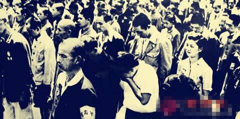 日本民众在聆听天皇宣读《终战诏书》