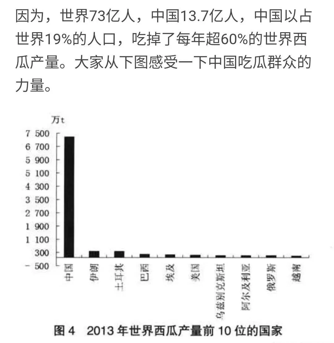 作为对比,美国人均吃西瓜约为7 公斤,中国人应该远高于此才对。