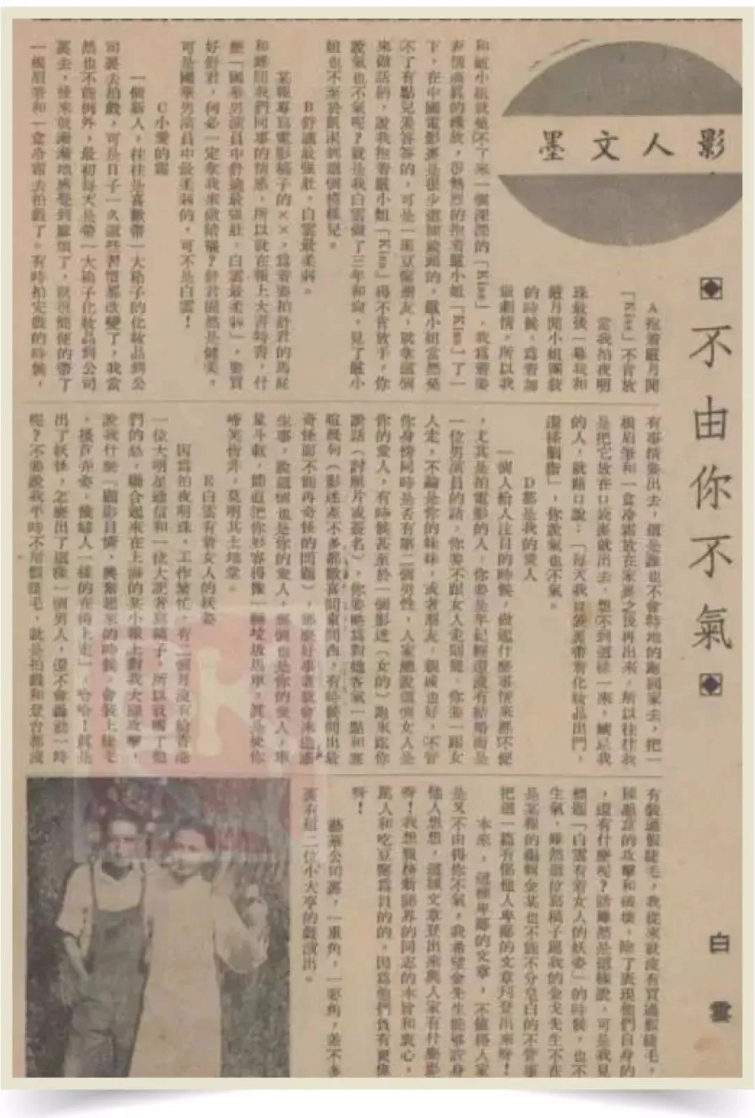 而白云也毫不畏惧,自己在报纸上写文章反击《不由你不气》,大意就是某香港系报纸,还有南方的金主们,因为自己最近没有搭理他们,就让写手编造这些攻击的言论。