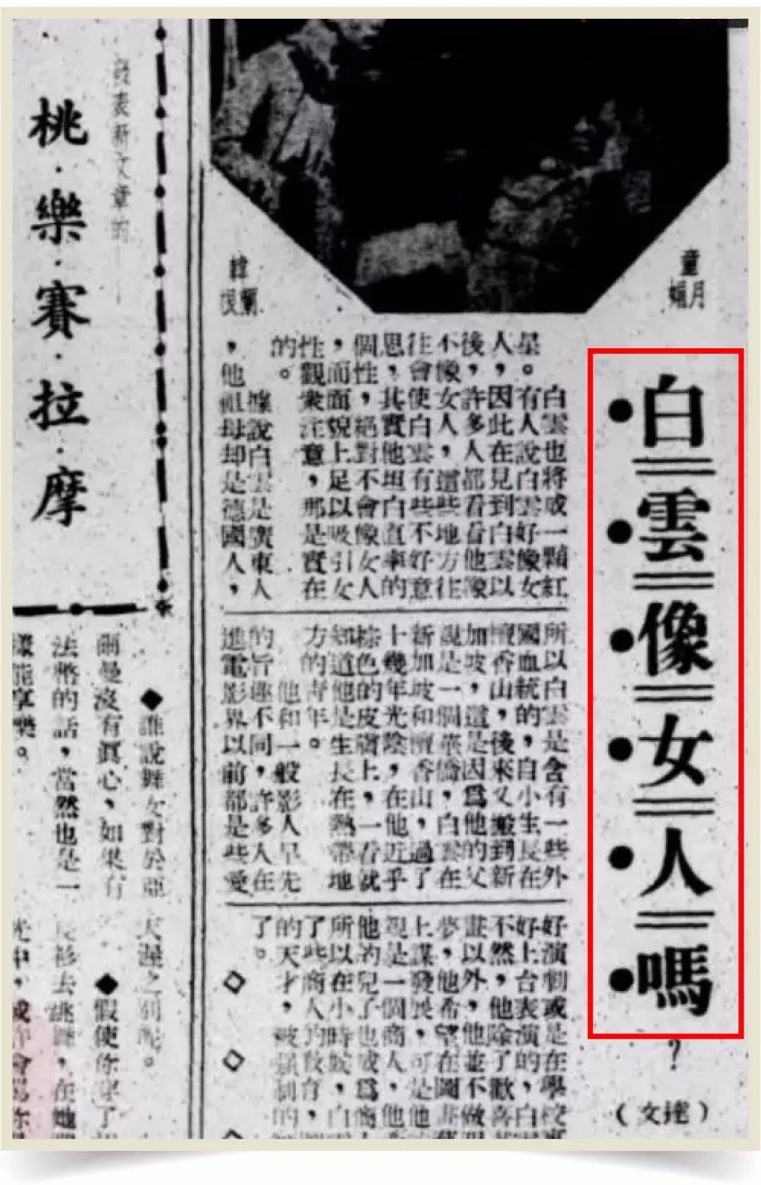 其实30年代的中国,不但有整容,也有PS,并且整起来也不失狂野……只不过严重模糊的照片,让我们难辨痕迹。