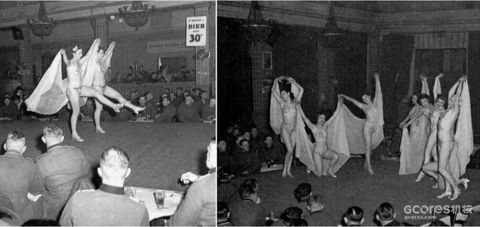 在“Bordelle”内观看脱衣舞的德国官兵。