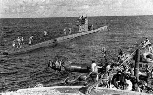 ■ 图为1942年7月正在海上接受油料和鱼雷补给的U-154(远处)。该艇前后有过4任艇长,库施是第三任,该艇在二战中的总击沉战绩为49288吨,最后于1944年7月3日在葡萄牙与摩洛哥附近海域被击沉,全员57人无一生还。
