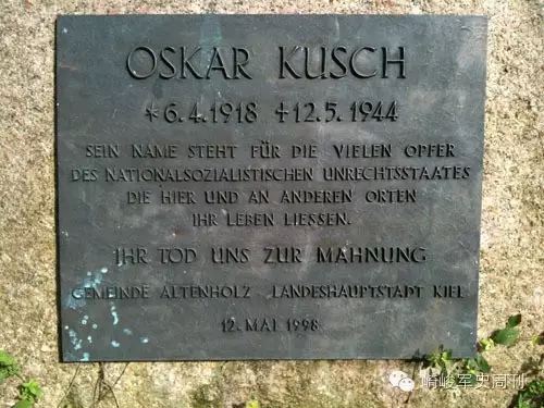 但是,当时的德国民众并不知道发生在库施身上的悲剧。直到上世纪90年代,历史学家海因里希 · 瓦勒(Heinrich Walle)发表了一份学术报告,详尽记载了库施案件的前因后果,得到了社会的关注。瓦勒致力于为库施恢复名誉,最终这份沉重的报告引起了德国政府的注意,于1996年为库施平反。两年后,距离基尔运河入口处不远的小广场上立起了一座纪念碑,通往广场的小路也被命名为“奥斯卡 · 库施路”。这座小广场,正是五十余年前他被枪毙的地方。