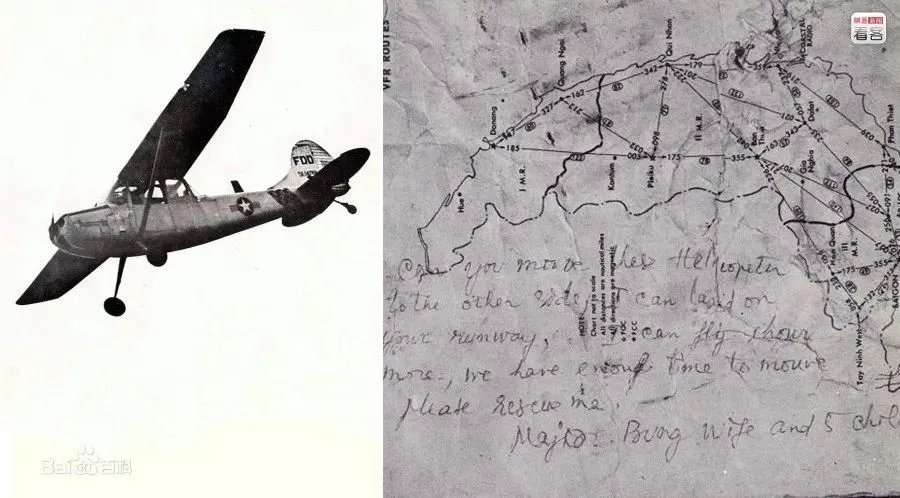 左:黎邦驾驶飞机;右:黎邦扔下的领航图。据报道,“ 中途岛”号的美军官兵后来还建了个基金会,以资助黎邦少校一家在美国的生活。而这架O-1观测机,至今保留在美国彭萨科拉海军博物 馆