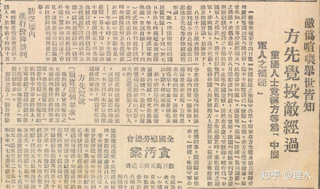 8月13日日本《西部朝日新闻》刊载文章,对方先觉同意无条件投降一事报道如下: