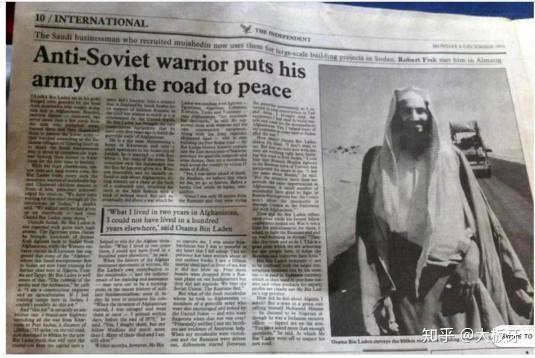 但当时没人在意这一点,1993年,英国独立报还在一篇名为 “反苏战士带着他的军队走向和平之路”中称赞拉登是“人道主义者”,因为他帮苏丹修基建。但拉登之所以这么做,因为苏丹刚由于政变而上台了一个激进伊斯兰政权。