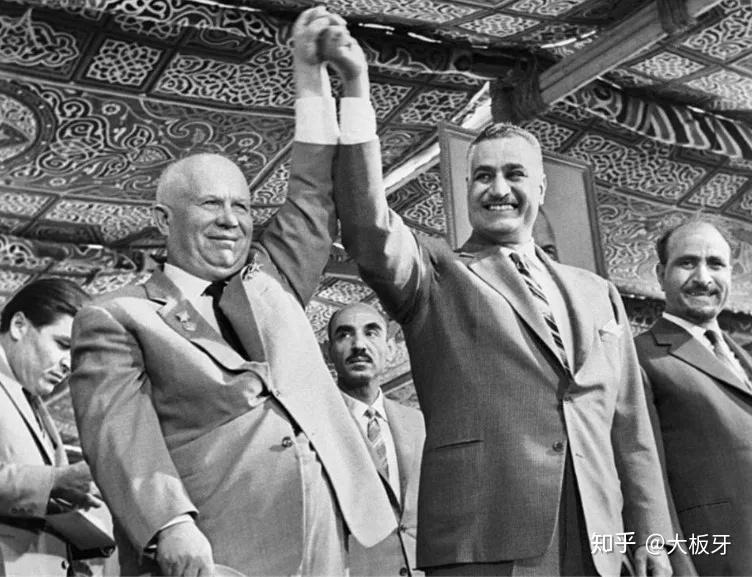 作为新兴的世界大国,苏联对中东石油垂涎欲滴,但一直苦于找不到介入中东事务的理由。纳赛尔的诉求简直是雪中送炭,两者一拍即合,熟悉的场景又出现了:苏联帮埃及等阿拉伯国家一边搞建设一边消灭以色列,作为交换,阿拉伯国家要在中东当苏联的小弟,配合苏联老大哥排挤美国。