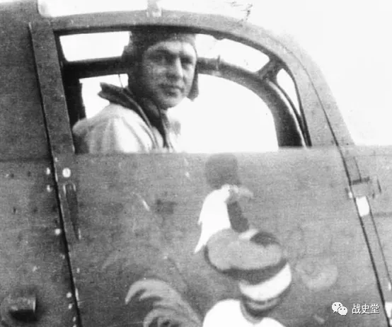 ▲座舱里的汤普森中尉,注意舱门上涂着队徽。