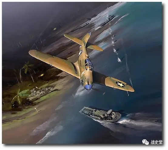 ▲表现P-400击落九九舰爆的绘画,然而他们遇到的是零战。
