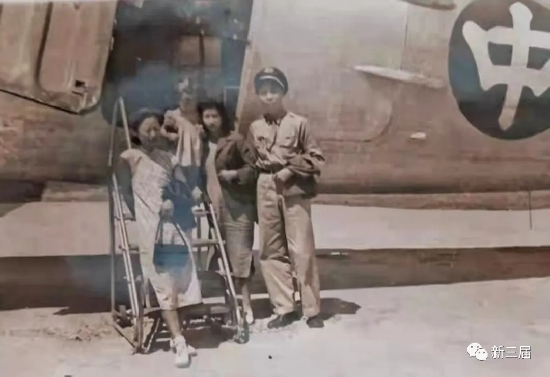 左边的女士是来接机的,看到林汝良一家幸福团聚,她无论如何笑不出来,控制不住地悲伤落泪。她已经是四个孩子的妈妈。1945年1月,快要看到胜利的曙光了,她的夫君陈鼎峙在驼峰飞行时,由于大雾弥漫云层浓厚,机翼碰到魔鬼牙齿般的山顶瞬间坠落,七名机组人员全部惨烈遇难。七位妻子痛不欲生,七个家庭一片荒芜。