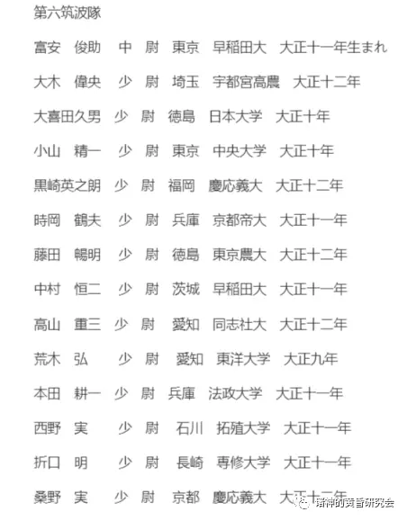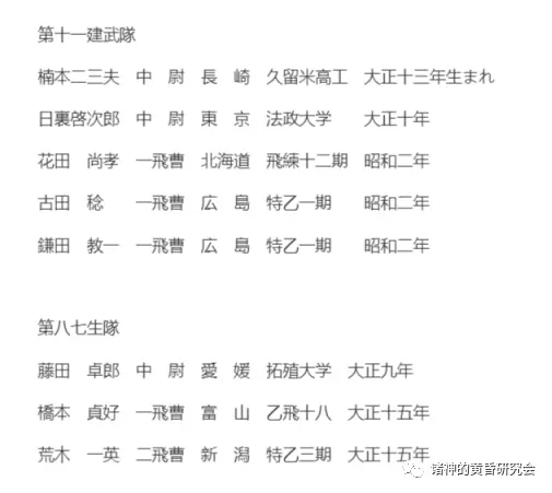 当日出击的日军飞行员姓名、军衔、出身地、毕业院校及出生年份