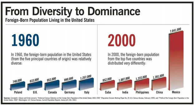 首先是种族主义对美国信念的挑战,对少数族裔的补偿行动、配额机制、特殊照顾变成了逆向种族主义,走向种族平等的反面。其次是双语趋势对英语主体地位的挑战。墨西哥裔群体要求把西班牙语列为第二语言,冲击英语的主体地位。很多白人不愿让子女跟墨西哥裔同校,导致教育上的种族隔离在美国重现。精英与大众对此严重分裂,精英支持双语,大众并不支持。1980-2002年间,美国包括最自由主义的加利福尼亚州在内的四个州和三个城市进行了12次语言政策公民投票,只有一次是大众支持了精英。最后是多元主义对核心文明的挑战。多元主义本身不是西方文明固有的,它是少数族裔通过斗争争取来的。但是,多元文化对公立学校影响巨大,公立学校原本应该宣扬美国和美国人的国家与民族历史、意识和认同,现在却变成了黑人、亚裔、印第安人等少数族裔各自宣扬祖国的历史,美国史被逐出大中小学课堂,从主流变成了边缘。亨廷顿认为,这三大挑战直指欧洲文明、欧洲中心论或西方文明中心论,直指盎格鲁-撒克逊白人在美国的主体地位,它们改变了教育平等的内涵,导致同化不再意味着美国化,不是向美国主流语言文化靠拢,而是向母国语言文化靠拢,越来越多的新移民身在曹营心在汉,遍布西南各州的墨西哥裔尤其难以同化,西南各州可能变成“墨西哥的飞地”,变成 “美国的魁北克”,美国国将不国的危险大大增强。