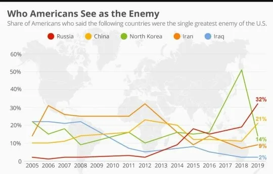 美国盖洛普公司对“谁是美国的敌人”的抽样调查结果