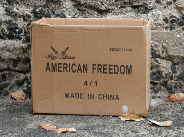 近年来颇为流行的“美国自由、中国制造”纸箱图