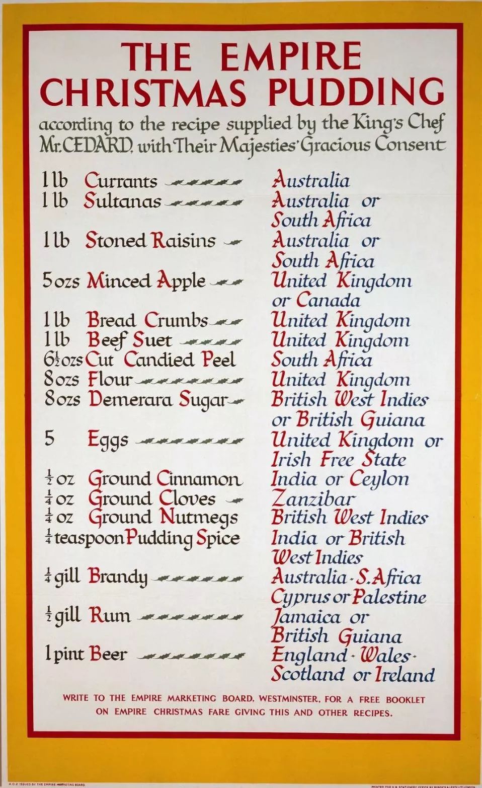 英国政府向人们推广了这个圣诞甜点食谱。其中所有原材料都来自于英联邦的各个成员国。