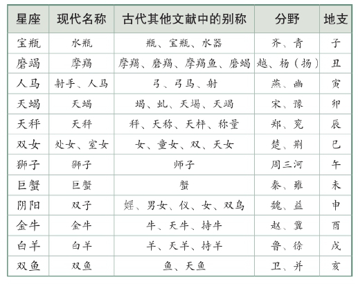 中国古人把天上的星象和地上的区位对应起来,这就是所谓的分野,一般是用二十八星宿或者十二次。《滕王阁序》里的“星分翼轸”,就是说南昌所在的地方是翼、轸两星宿的分野。但是到了宋代以后,中西文化有了一次奇妙融合,人们用十二星座来分野。