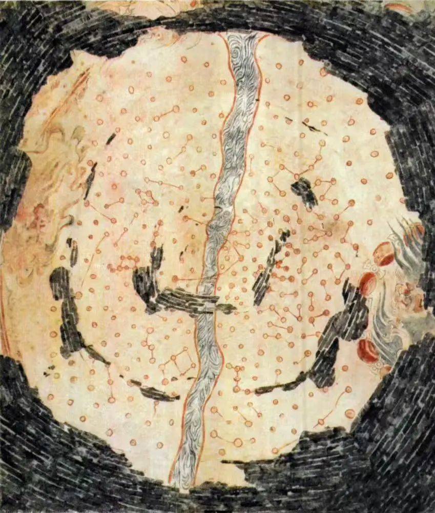南北朝时期的墓室星象图,中间的长条,象征银河。
