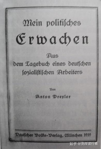 1919年9月19日,希特勒出席了德国工人党的会议,这个党1月份才成立,创办者是体育记者Karl Harrer和铁路机修工Anton Drexler。后者很欣赏希特勒的演讲能力,送给他自己的著作《我的政治觉醒》。从后来的历史发展来看,这本书改变了希特勒,改变了德国工人党,改变了德国,更改变了世界的历史。