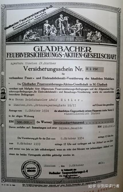 希特勒的纳税申报也证明了他对藏书的热情。除了个人日常开销和政治活动花费外,希特勒单笔最大开销就是图书。1934年11月,他在Gladbacher火灾保险公司为慕尼黑的公寓投保时,他的财产估价为30万马克,其中一半为艺术藏品,另一半为图书和其他贵重物品。在已经打印好的保单补充条款中,希特勒又追加了一项:包括书籍。