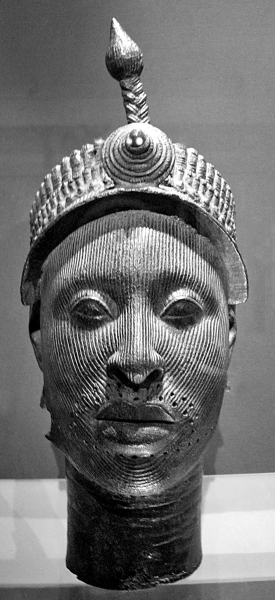 现保存于大英博物馆的伊费国王奥尼头像,是1938年出土的18件铜像作品中的一件,其铸造时间约为13世纪至14世纪,头像高约35厘米,头戴传统王冠,面部刻有规则的细纹,这一特征在伊费诸多赤陶作品中也有体现。伊费奥尼头像的唇部有许多小孔,据推测是被用来安插珠帘或饰物来遮挡唇部。