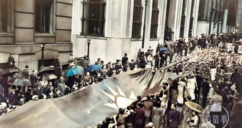 曼哈顿街头的美国人向国旗上抛捐款