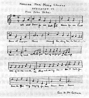 此时,城内还未离开的的 22 位外籍人士(多为传教士、医务者与外国公司工作人员)受到上海「南市安全区」的启发,开始筹建「南京安全区」,庇护无路可逃的南京平民。