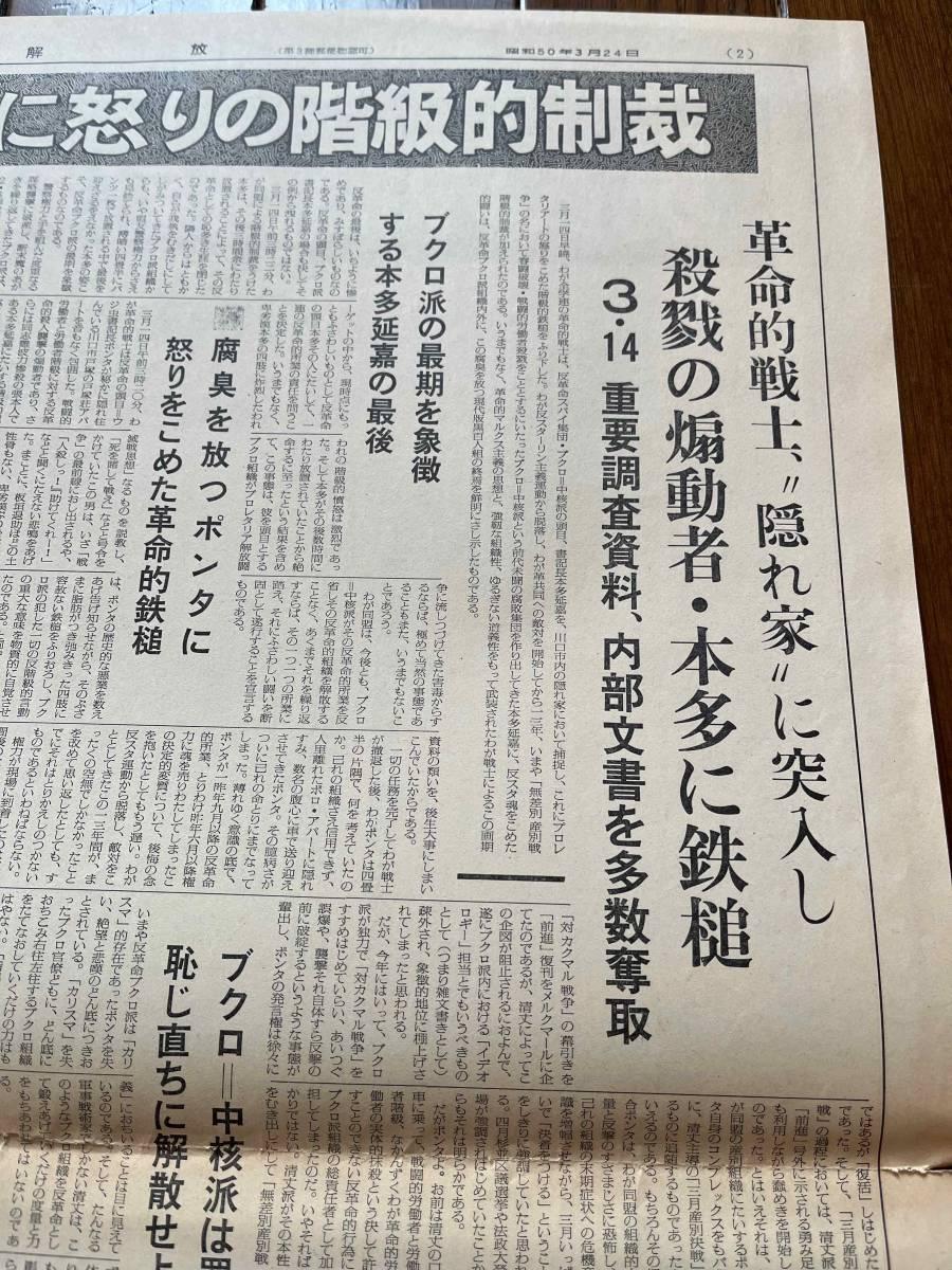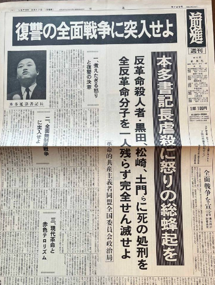 5月16日:赤砦社派在千叶县杀害了现代社派一名总务委员。