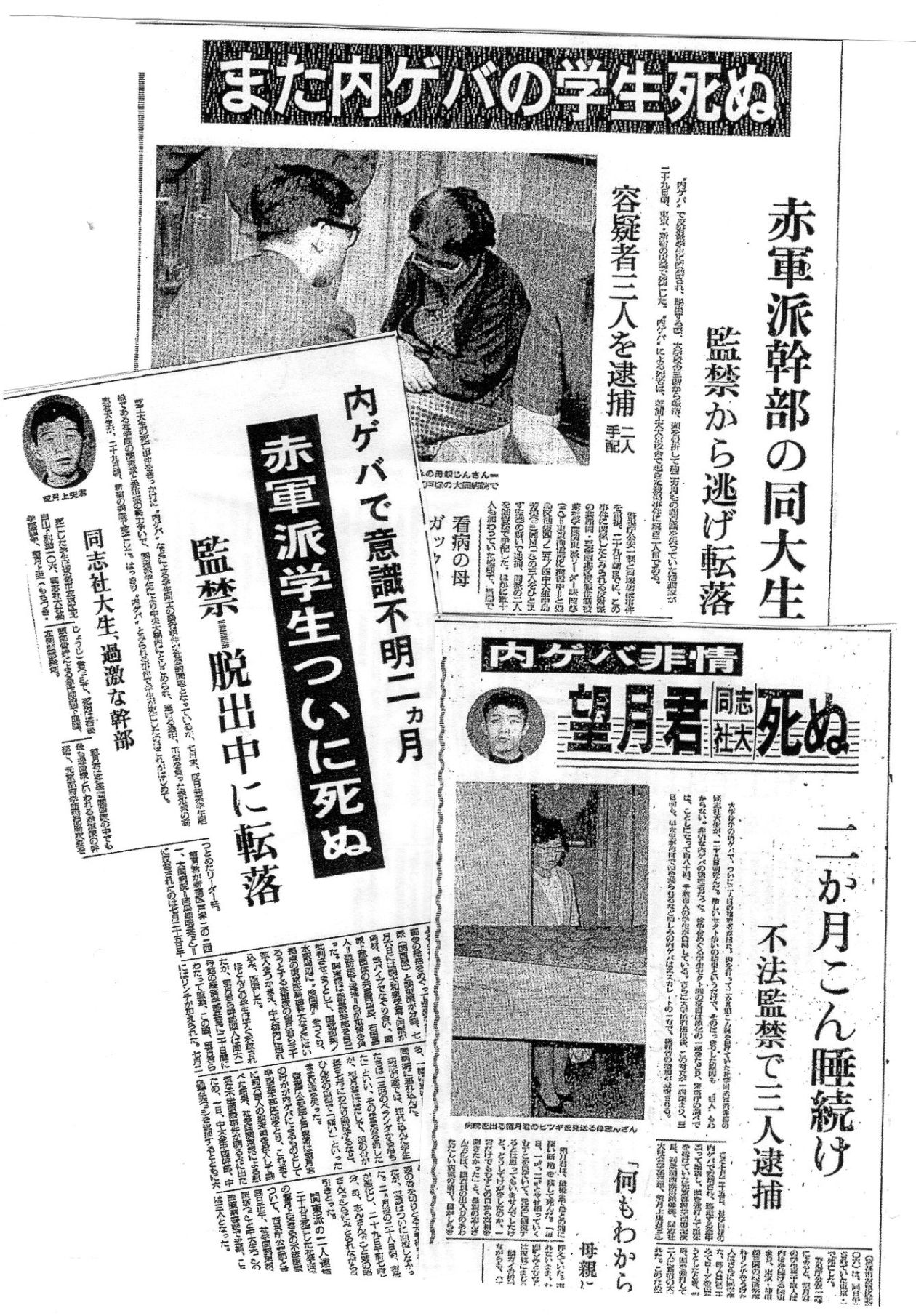 7月25日:四人试图逃离软禁。望月上史在逃离时从中大本馆法学部三楼坠落,头部着地,紧急送入医院,最终于9月27日去世。这是日本第一起内ゲバ死亡事件。社学同关东派リーダー三上治(本名味冈修)等三人因此被捕。