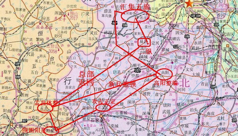 但团长(是不是老资格的红军干部杨森?)不干,非要攻,一营白白搭上42条性命,门墩山还是没攻下来,但敌人突然后撤了。四旅也奉命从门墩山经裴山,南下攻打姚村。前两个地方在易县境内,后一个地方在定兴县境内。