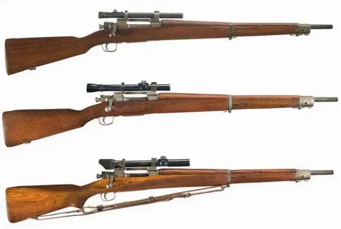 19世纪后期,美军开始配备挪威设计的7.62毫米克拉格步枪,纽约的布法罗光学仪器厂还专门为其设计了瞄准镜。测试表明,该枪在800码距离依旧有较高的命中率,但该枪最终还是无缘列装美军。不久后,斯普林菲尔德兵工厂的M1903系列栓动步枪正式成为美军制式步枪。一战前夕美军步兵考核标准是400码命中人形靶、200码命中靶标头部,可见该枪的精度还是可以的。最主要的是M1903的枪栓带有较大倾角,因此不会导致瞄准镜和枪栓冲突,因此该枪很适合改装为狙击枪。