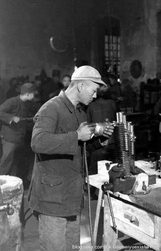 阎锡山太原兵工厂正在制造的75毫米口径的火炮