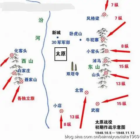 “太原前委总结历史经验与现实条件,放弃了以城东南为主攻方向的计划,知难而上,决定首先攻占东山,从东北、东南及正东方向逼近太原,相机攻城。在战术的制定上,则放弃平推,而决定南北穿插,不顾敌人东山主峰的干扰,直接插入东山四大要塞”。