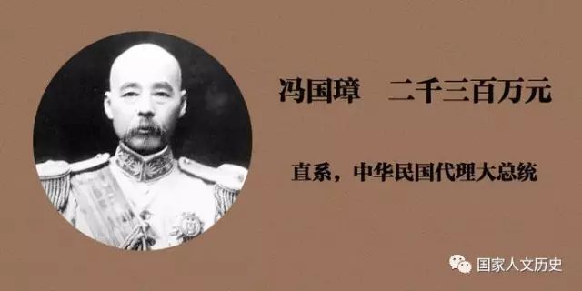 我们还可以看另一位北洋要人、曾任民国副总统和代理大总统冯国璋的财产状况。在他临终时,王克敏和冯耿光来病榻前看望,并询问有什么未尽事宜。冯国璋说,他的财产,连值钱的带不值钱的,大约有两百多万。将来长子分一大股,中间的(儿子)分中股,小儿子分小股。冯国璋死后留下的财产总额,按照律师清点统计,共有264.5万余元。其中包括祭扫费29.4万元,现金56.9万元,商业投资49.9万元,股票43.4万元,房地产84.9万元。其中重要的几项统计如下: