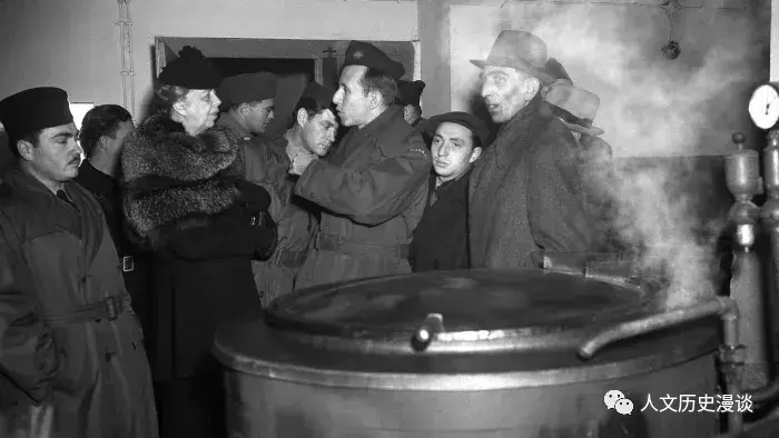 图:埃莉诺·罗斯福视察德国蔡尔沙伊姆营地的厨房,1946 年