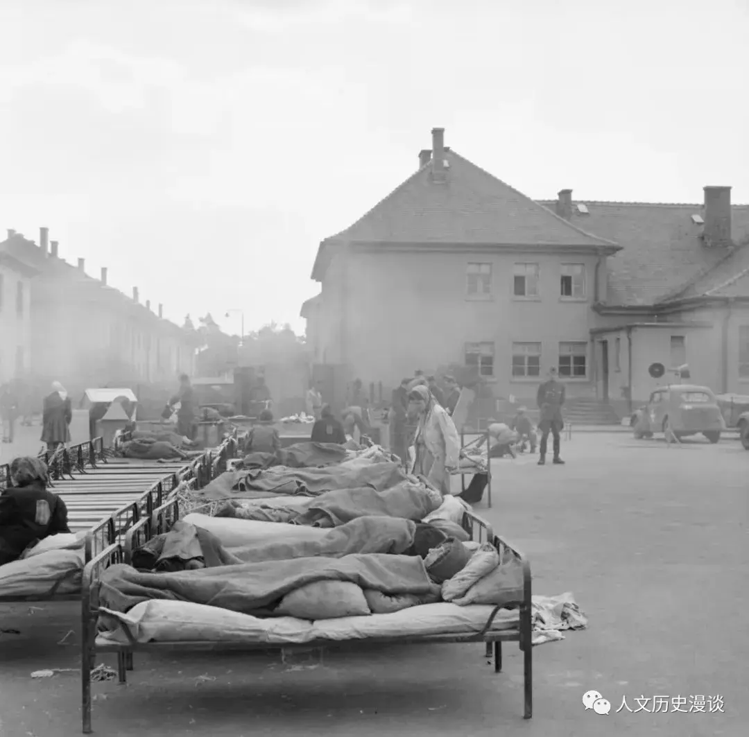 图: 卑尔根-贝尔森营地的露天医院,1945年