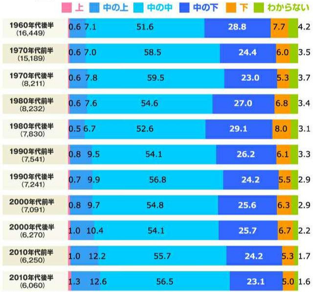 时至今日,仍有超过90%日本人认为自己自己属于中产阶级,认为日本是一个平等而没有阶级划分的社会。