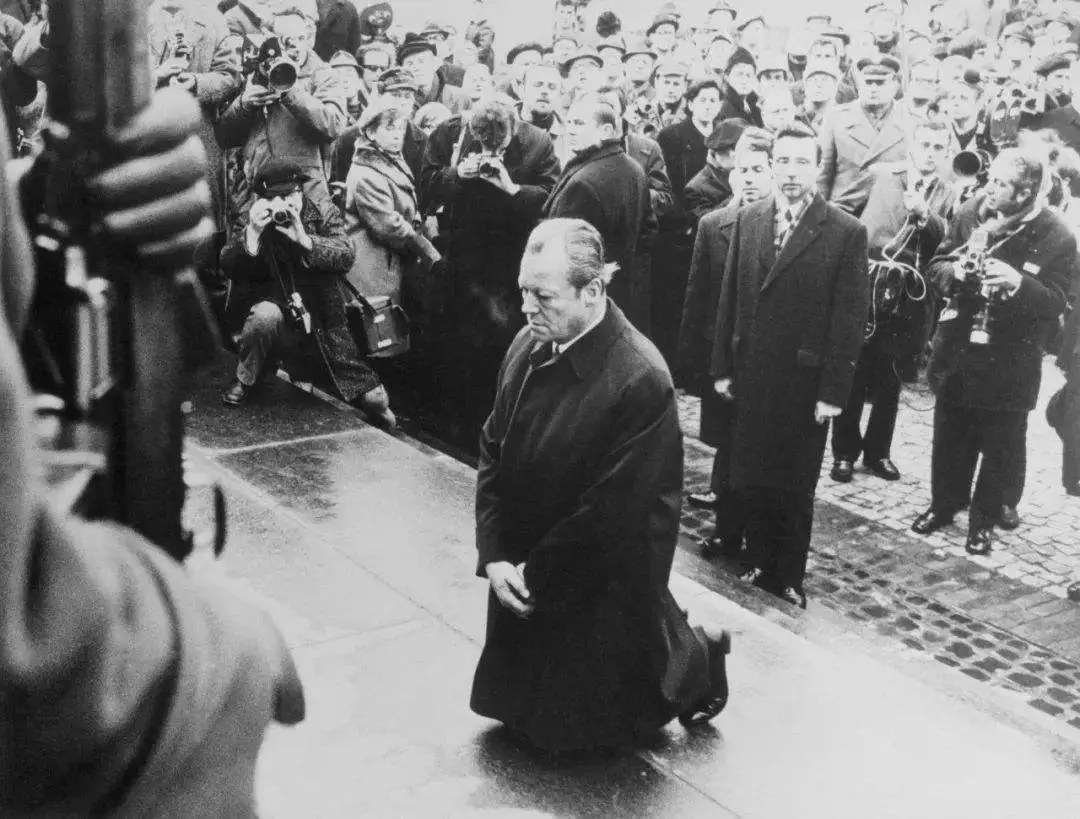 从此,在深受德国纳粹蹂躏的东欧人民心中,德国人不再只是杀人不眨眼的纳粹屠夫。当晚,勃兰特在双方外交部长的陪同下,与波兰首相共同签署了关于两国关系正常化的纲领性文件——《华沙条约》。