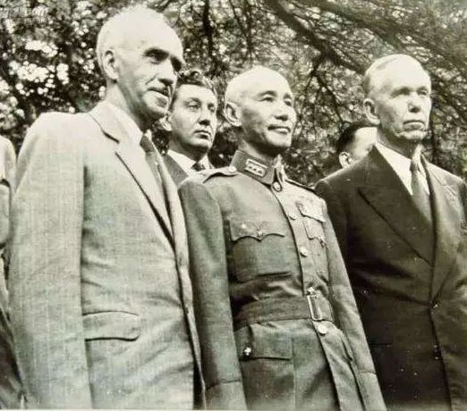 司徒雷登(前排左一)、蒋介石(前排左二)、马歇尔(前排左三)合影