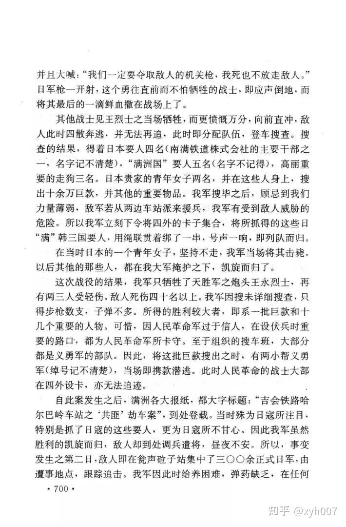 其他战士见王烈士之当场牺牲,而更愤慨万分,向前直冲,敌人此时四散奔逃并无法再追,此时即分配队伍,登车搜查。控查的结果,得着日本要人四名(南满铁道株式会社的主要干部之一,名字记不清楚),“满洲国”要人五名(名字不记得),高丽重要的走狗三名。日本贵家的青年女子两名,并在这些人身上,搜出十余万巨款,并其他的重要物品。我军搜毕之后,顾忌到我们力量薄弱,敌军若从两边车站派来援兵,我军有受到敌人威胁的危险。所以我军立刻下令将四外的卡子集合,将所抓得的这些日“满”韩三国要人,用绳联贯着绑了一串,号声一响,即列队而归。