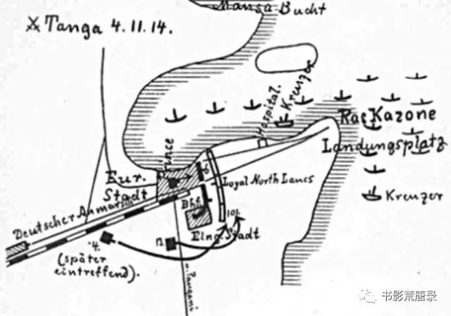 1914年11月2日早上7点,英国入侵部队的前锋皇家海军巡洋舰“狐狸号”(HMS FOX)驶入坦噶港。