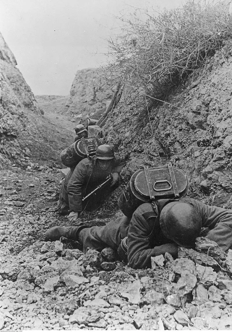 一支德军给养分队正在塞瓦斯托波尔铺满碎石的壕沟间穿行,将食物送到前方