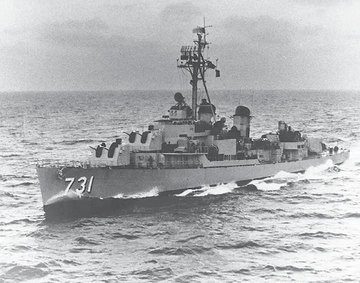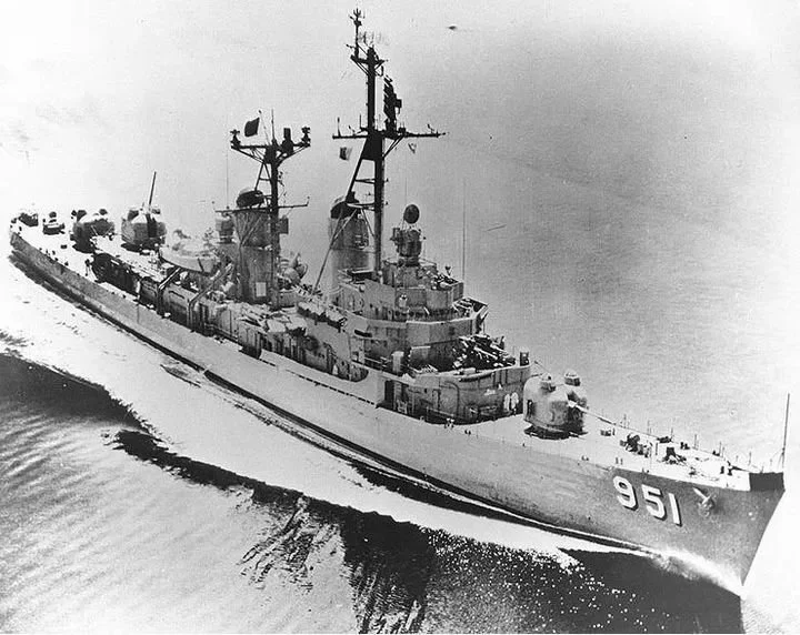 图10.“特纳·乔伊”号驱逐舰,摄于上世纪50年代末60年代初。该舰属“福雷斯特·谢尔曼”级,长127米,宽14米,吃水6.7米,标准排水量2800吨,满载排水量4050吨,主炮为三座Mk 42型5英寸/54倍径单管火炮。“特纳·乔伊”号1982年退役,1991年改为博物馆舰,停泊在华盛顿州的布雷默顿