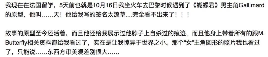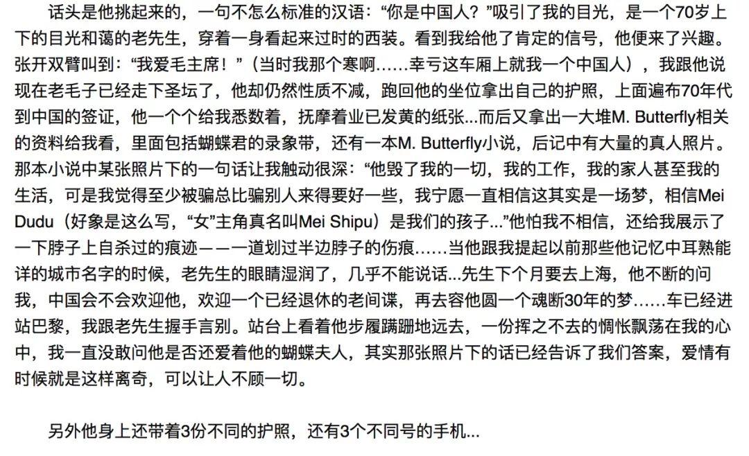间谍,跨国婚姻,畸恋,这宗扑朔迷离的案子震惊了整个西方社会。剧情之荒诞离奇恐怕胆子再大的编剧都编不出来。这宗传奇的案件后来还被国外的导演改编成了戏剧和电影,名字叫《蝴蝶君》(没看过的朋友绝对值得一看!),在西方艺术圈引起了极大的轰动。