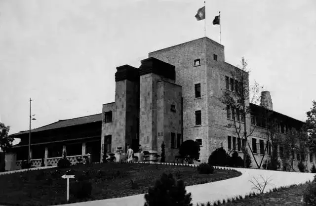 1936年建成的南京中山文化教育馆,出自大师童寯之手,童寯与梁思成、杨廷宝、刘敦桢齐名,并称为中国建筑师中的 “建筑四杰”。这座建筑采用了大胆的不对称的构图手法,上部点缀少许琉璃花饰,气势宏伟,可惜毁于战火。