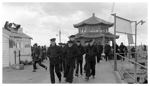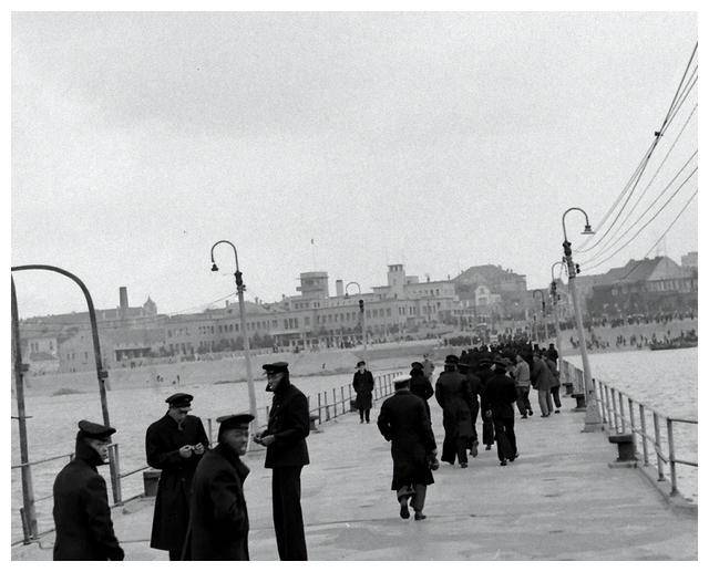 1948年,栈桥上的美军,此时的青岛仍旧盘踞着大量的美国海军与陆军。
