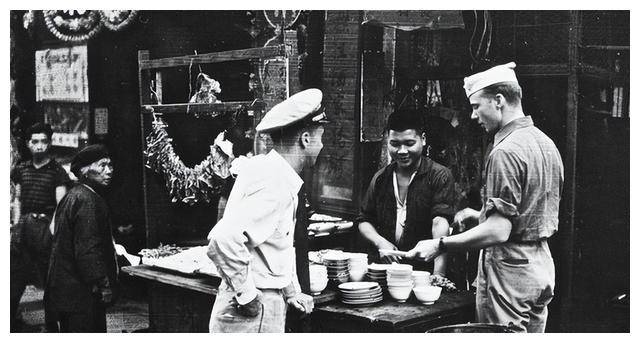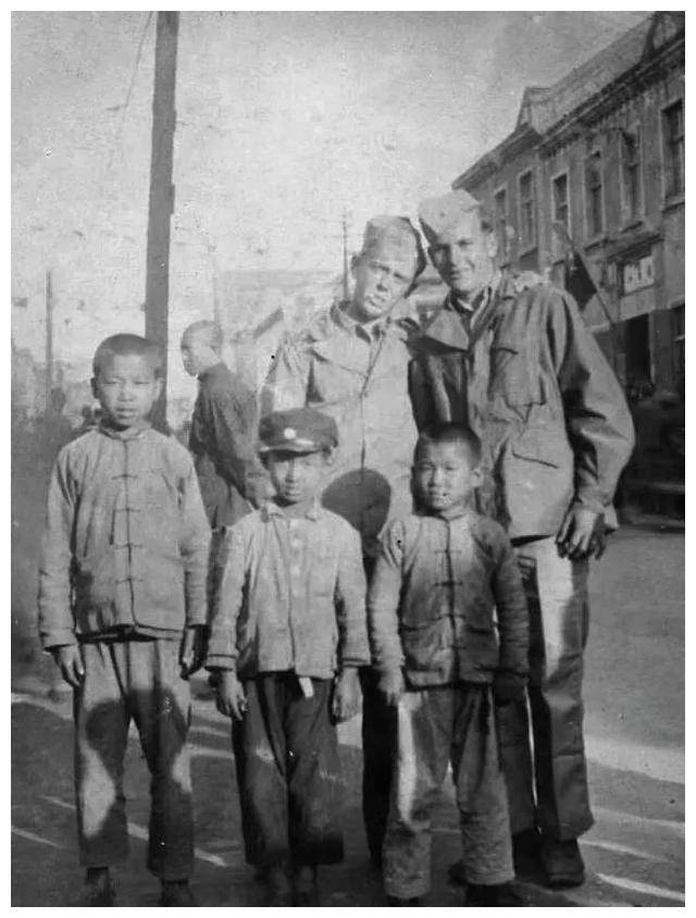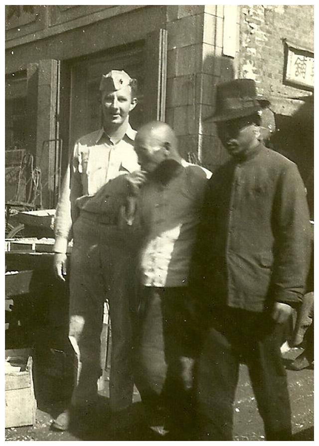 美军喜欢拉上中国人合影,与美军站在一起的人们表情很不自然。