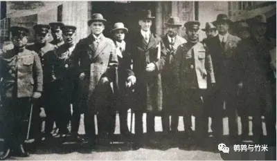 李顿调查团抵达东北后与日本关东军合影。调查团由英国外交官李顿伯爵、美国一战欧洲运输司令麦考伊少将、法国前驻华部队参谋长克劳德中将、德国专家希尼博士、意大利前驻德公使马克提伯爵组成。