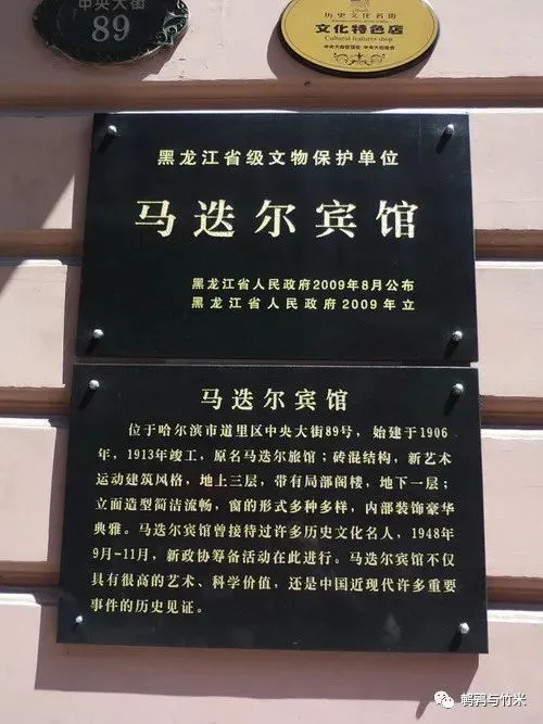 1926年7月22日,著名学者胡适途经哈尔滨时下榻马迭尔,并在会客大厅发表了一番演讲。