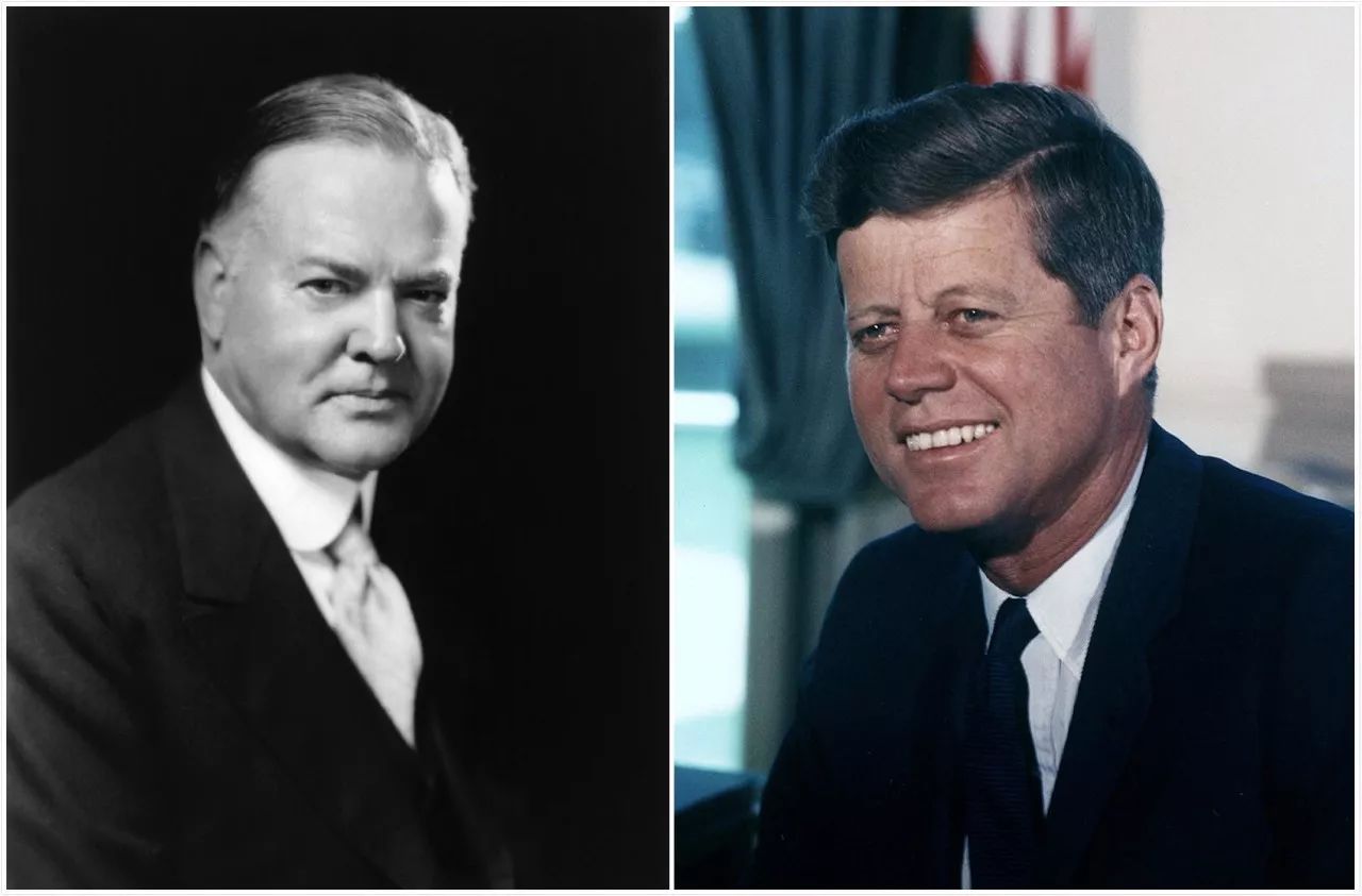 ▍左图是二战前的美国总统赫伯特·胡佛,右图是二战后的美国总统肯尼迪。可以明显看出二战前后美国总统肖像照的变化。