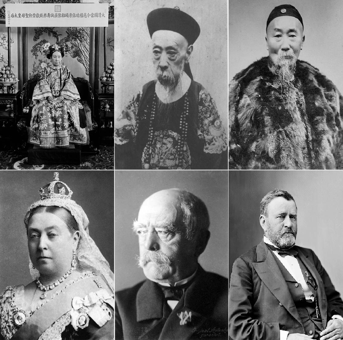 ▍慈禧太后、庆亲王奕劻、李鸿章、英国维多利亚女王、德国「铁血宰相」俾斯麦、美国总统格兰特。无论是中国还是西方,近代人物的照片几乎全都是这种严肃甚至略「丧」的风格